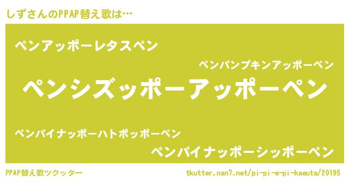 | ピコ太郎風あだ名 | 『シズ太郎』『ピシ史郎』『ピコシ郎』 |