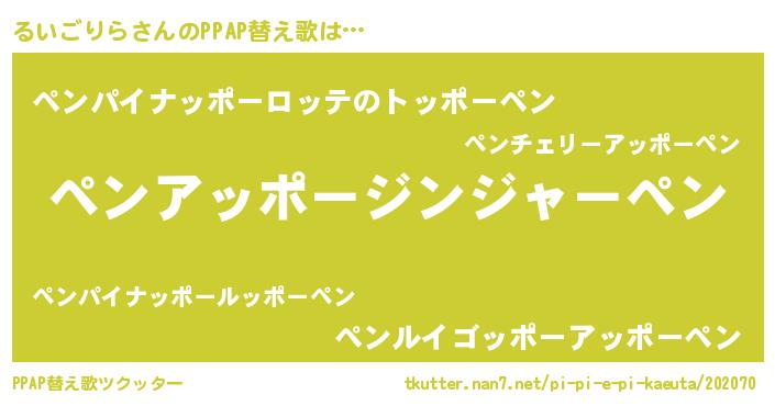 | 肩書あだ名 | 『るいごりら国家主席』『るいごりら中尉』 |