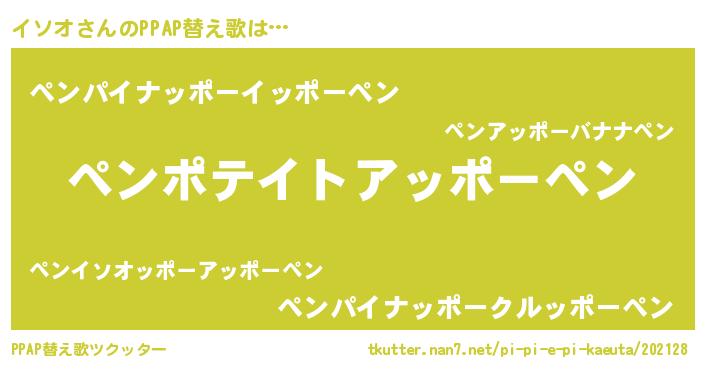 | 意味不明あだ名 | 『ペロリンイソオ』『永久保存イソオ』 |