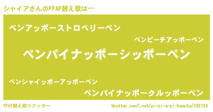| 意味不明あだ名 | 『永久保存シャイア』『ペロリンシャイア』 |