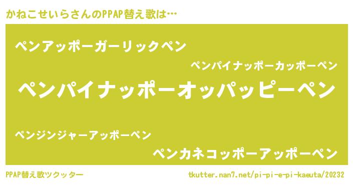 | ピコ太郎風あだ名 | 『カカ太郎』『ピカ八郎』『カネ次郎』 |