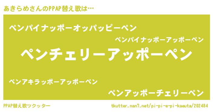 | 意味不明あだ名 | 『ペロリンあきらめ』『自称あきらめ』 |