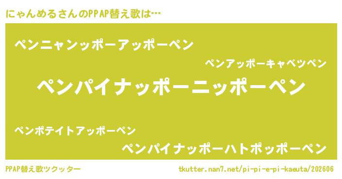 | ピコ太郎風あだ名 | 『ピコニ郎』『ニャ太郎』『ニニ太郎』 |