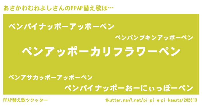 | 欧米人風あだ名 | 『アンジェラ・あさかわむねよし』 |