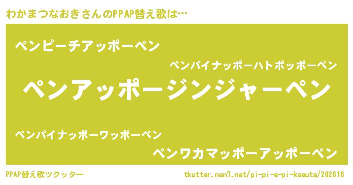 | ピコ太郎風あだ名 | 『ピワ五郎』『ワコ次郎』『ワカ五郎』 |