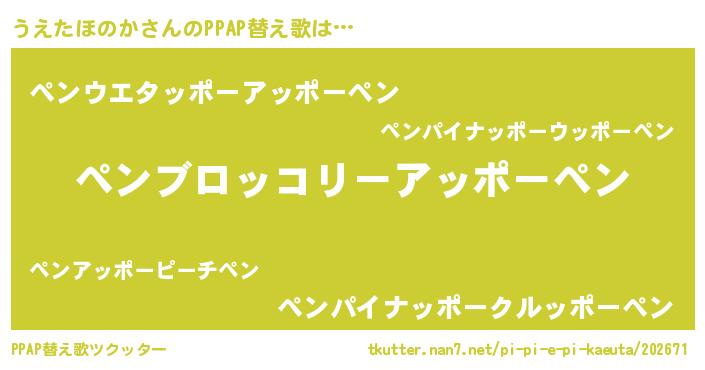 | ポケモン風あだ名 | 『ウエチュウ』『ヒウエタホノカ』 |