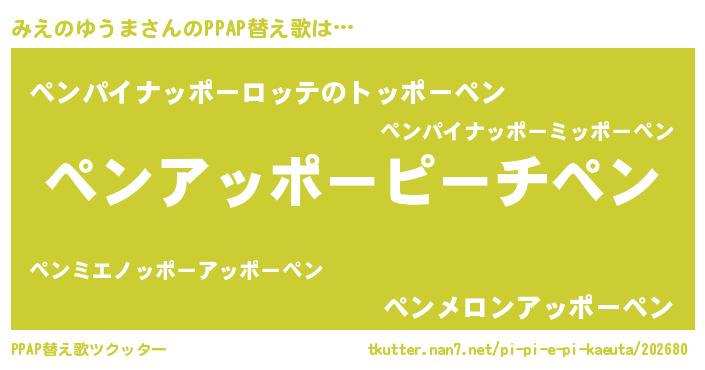 | 意味不明あだ名 | 『住所不定無職みえのゆうま(7歳)』 |