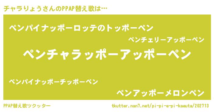 | ピコ太郎風あだ名 | 『チャ一郎』『チチ太郎』『ピチ八郎』 |