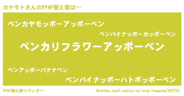 | ピコ太郎風あだ名 | 『カコ二郎』『カヤ三郎』『カカ太郎』 |