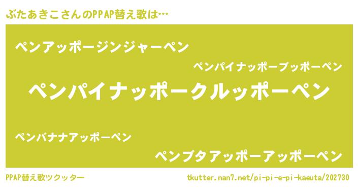 | ピコ太郎風あだ名 | 『ブブ太郎』『ピブ六郎』『ブタ史郎』 |
