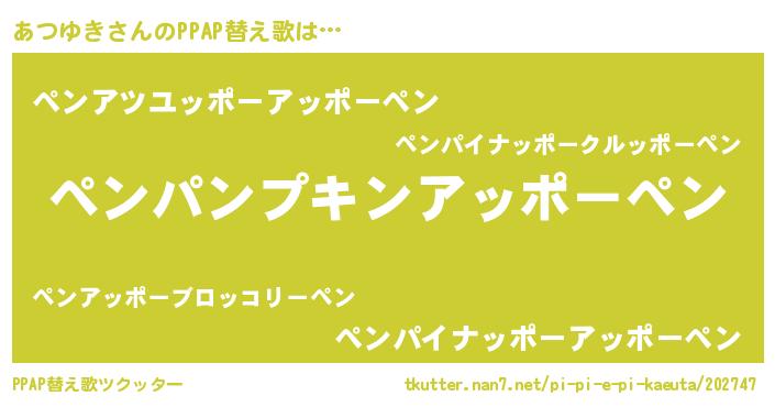 | 意味不明あだ名 | 『ペロリンあつゆき』『自称あつゆき』 |