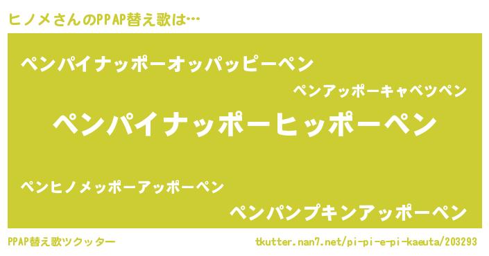 | 欧米人風あだ名 | 『アンジェラ・ヒノメ』『ダニエルヒノメ』 |