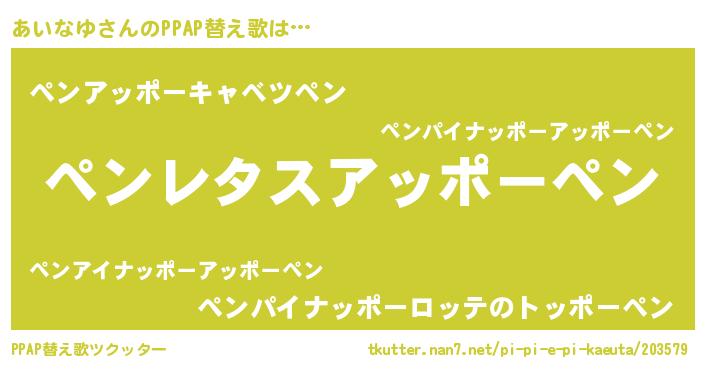 | 意味不明あだ名 | 『ペロリンあいなゆ』『自称あいなゆ』 |