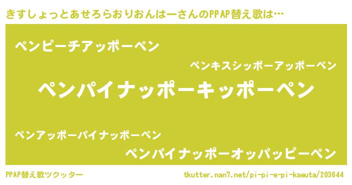 | 意味不明あだ名 | 『住所不定無職きすしょっとあせろらおりおんはー(86歳)』 |