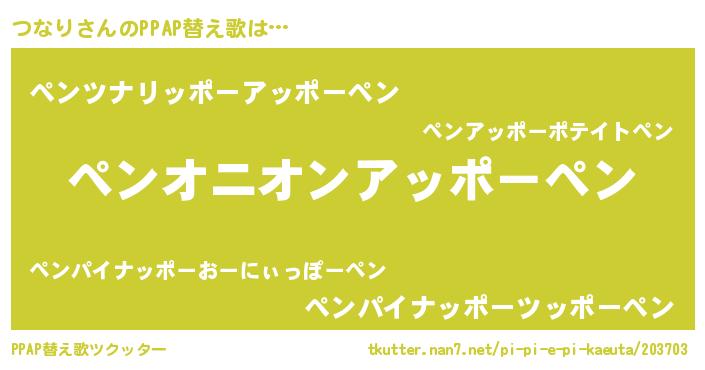 | ピコ太郎風あだ名 | 『ツコ六郎』『ツナ一郎』『ピコツ郎』 |