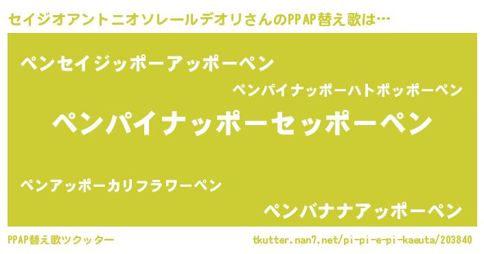 | 意味不明あだ名 | 『永久保存セイジオアントニオソレールデオリ』 |