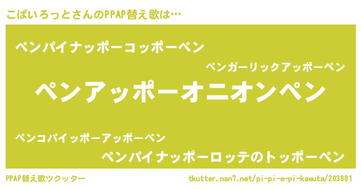 | 意味不明あだ名 | 『ニラ科こぱいろっと属』 |