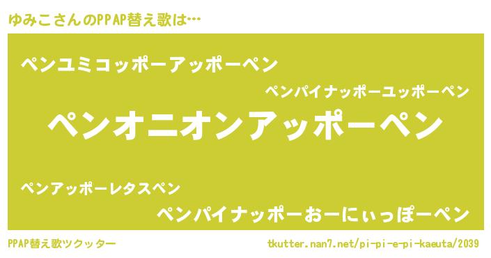 | ピコ太郎風あだ名 | 『ユコ六郎』『ユミ八郎』『ユユ太郎』 |