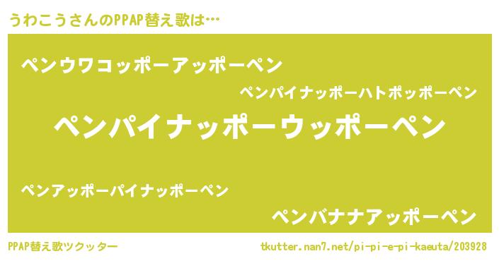 | ピコ太郎風あだ名 | 『ピコウ郎』『ウワ四郎』『ウコ次郎』 |