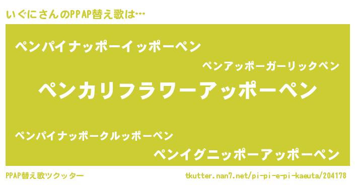 | ピコ太郎風あだ名 | 『イコ二郎』『ピコイ郎』『イグ次郎』 |