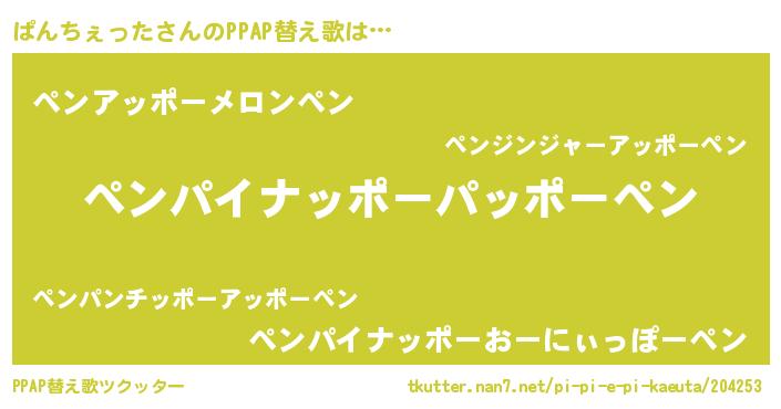 | 男性向けラノベタイトル風あだ名 | 『ぱんちぇったという概念が存在しない退屈な世界 』 |