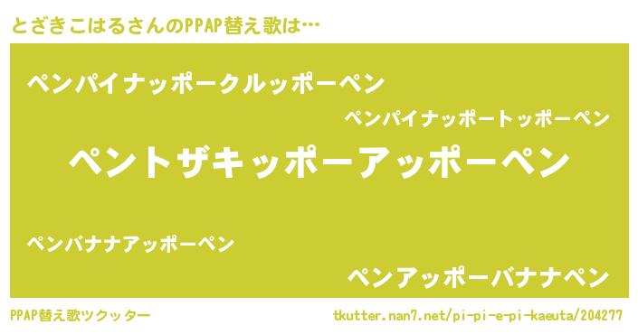 | ピコ太郎風あだ名 | 『トザ一郎』『トト太郎』『ピト三郎』 |