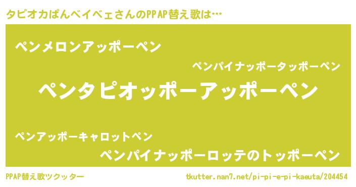 | ポケモン風あだ名 | 『ヒタピオカパンベイベェ』『タピチュウ』 |