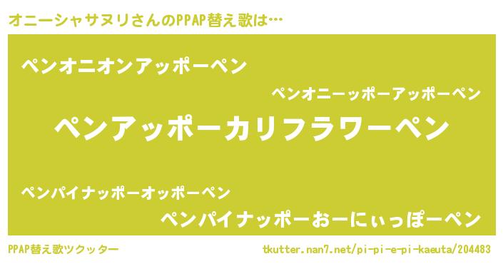 | 欧米人風あだ名 | 『オニーシャサヌリクリステル』 |