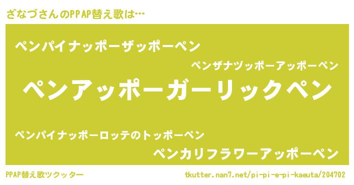 | ピコ太郎風あだ名 | 『ピザ八郎』『ピコザ郎』『ザコ二郎』 |