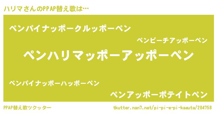 | ピコ太郎風あだ名 | 『ハリ太郎』『ハハ太郎』『ピハ四郎』 |