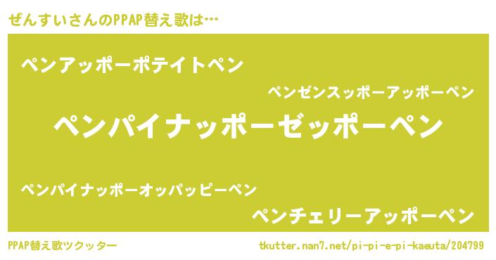 | 男性向けラノベタイトル風あだ名 | 『Re:ぜんすいから始める異世界生活』 |