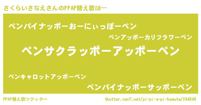 | 欧米人風あだ名 | 『アンジェラ・さくらいさなえ』 |