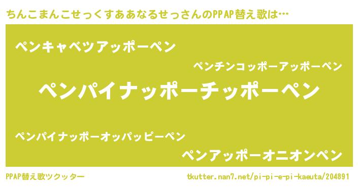 | ピコ太郎風あだ名 | 『ピコチ郎』『チコ史郎』『ピチ六郎』 |