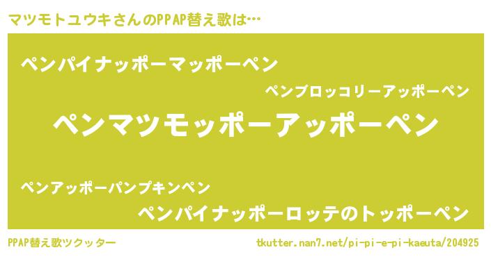 | ポケモン風あだ名 | 『ヒマツモトユウキ』『マツゴンZ』 |