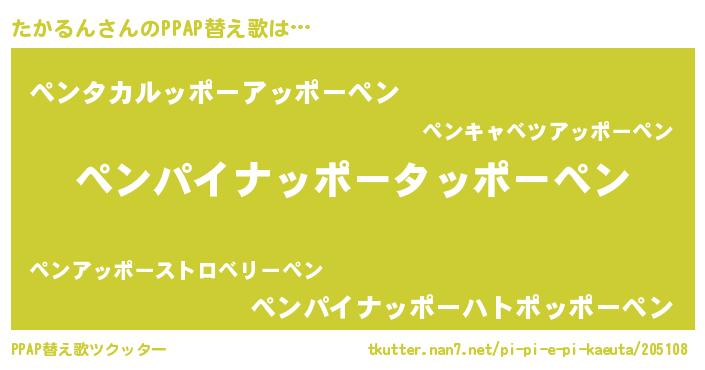 | ピコ太郎風あだ名 | 『ピコタ郎』『タカ八郎』『タタ太郎』 |