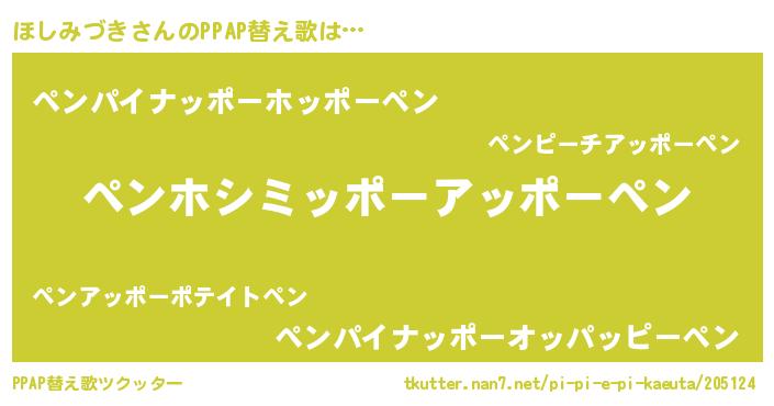 | ポケモン風あだ名 | 『ホシゴンZ』『ヒホシミヅキ』 |