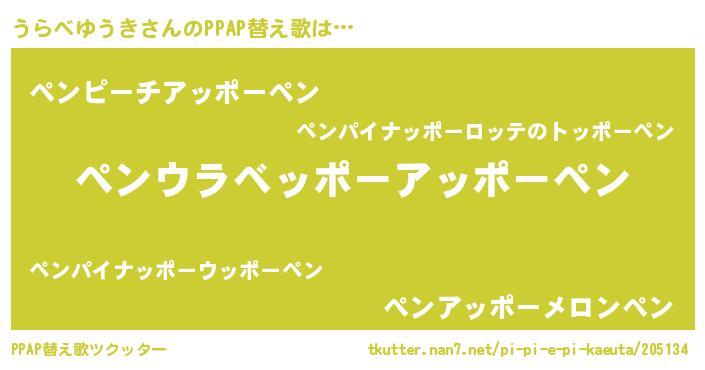 | ピコ太郎風あだ名 | 『ウラ一郎』『ウコ次郎』『ピウ十郎』 |