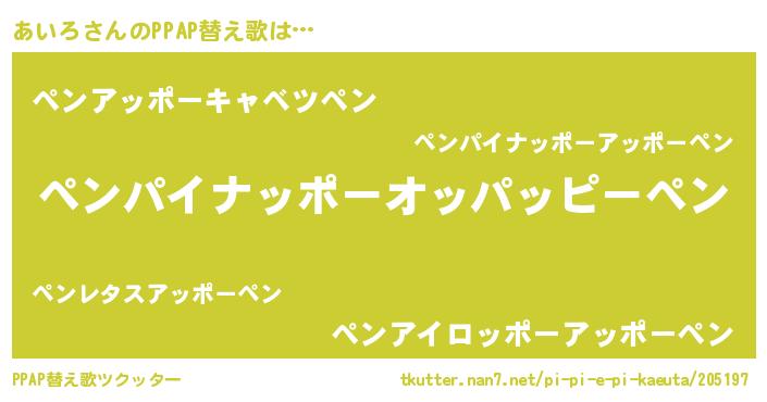 | 欧米人風あだ名 | 『ダニエルあいろ』『あいろクリステル』 |