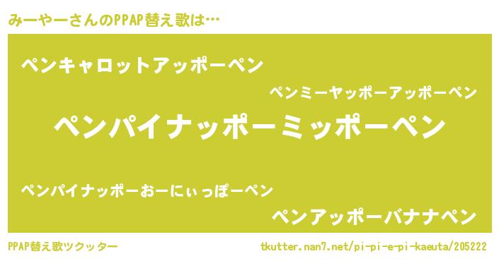 | 意味不明あだ名 | 『永久保存みーやー』『ペロリンみーやー』 |