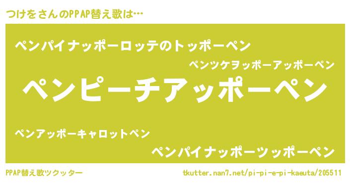 | 意味不明あだ名 | 『住所不定無職つけを(4歳)』『自称つけを』 |