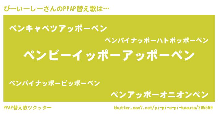 | ピコ太郎風あだ名 | 『ビー史郎』『ビコ四郎』『ピビ六郎』 |