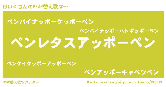 | 意味不明あだ名 | 『ペロリンけいく』『永久保存けいく』 |
