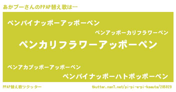 | 意味不明あだ名 | 『ペロリンあかプー』『永久保存あかプー』 |