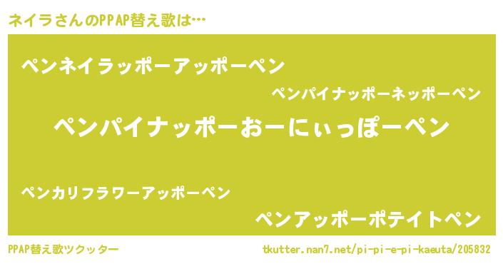 | ピコ太郎風あだ名 | 『ネネ太郎』『ネイ十郎』『ピネ二郎』 |