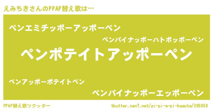 | ピコ太郎風あだ名 | 『エコ四郎』『エミ六郎』『ピコエ郎』 |