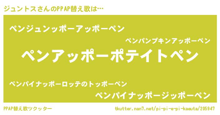 | 意味不明あだ名 | 『自称ジュントス』『永久保存ジュントス』 |