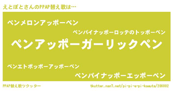 | ピコ太郎風あだ名 | 『ピエ八郎』『エコ六郎』『ピコエ郎』 |