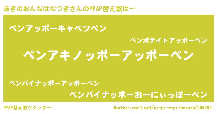 | ポケモン風あだ名 | 『ヒアキノオンナハナツキ』『アキゴンZ』 |