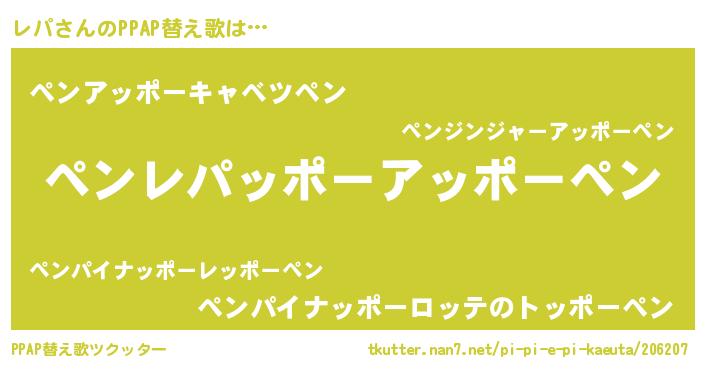 | ピコ太郎風あだ名 | 『レパ四郎』『ピレ四郎』『レレ太郎』 |