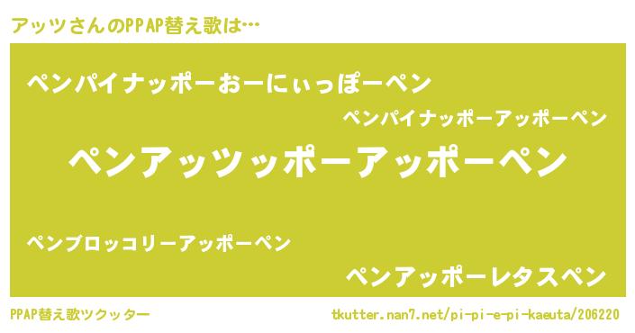 | 意味不明あだ名 | 『住所不定無職アッツ(43歳)』『自称アッツ』 |